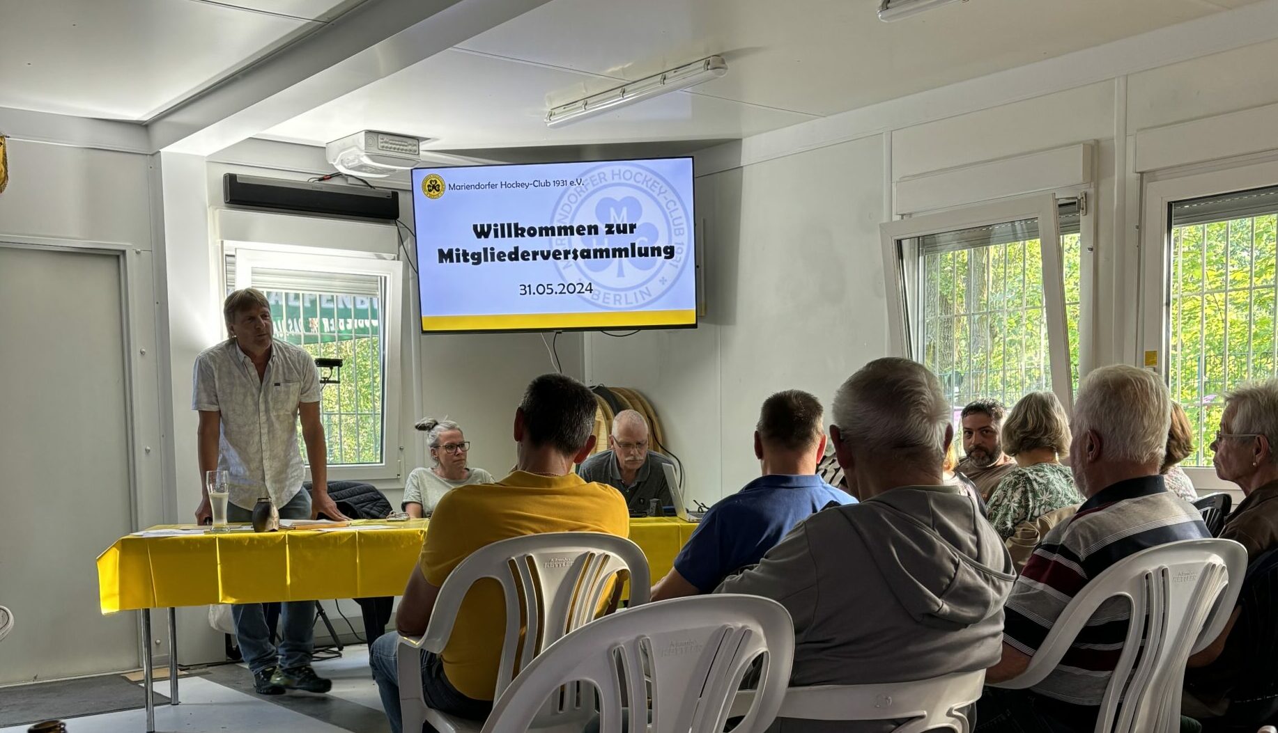 Am 31. Mai 2024 fand die jährliche Mitgliederversammlung des Mariendorfer Hockey-Club 1931 e.V. in unserem neuen Clubhaus statt. Wir durften 75 stimmberechtigte Mitglieder und 6 Gäste begrüßen. Es war fast schon ein wenig eng (;